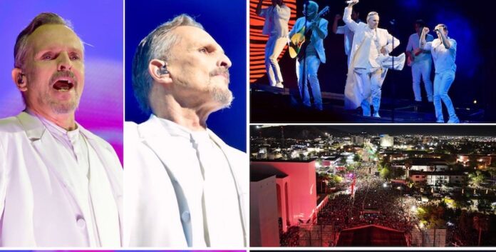 Hermosillo, Sonora.- Desde España para el desierto de Sonora, Miguel Bosé contagió con su energía a miles de hermosillenses y visitantes en el Foro Rosales quienes celebraron a lo grande la tercera noche de festejos de las Fiestas del Pitic 2025.