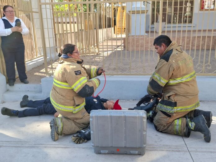 Guaymas, Sonora.- Un total de 450 personas, entre estudiantes, docentes y personal administrativo, participaron este miércoles en un simulacro de incendio realizado en las instalaciones del Instituto Regional de Guaymas, ejercicio que incluyó maniobras de evacuación y rescate.