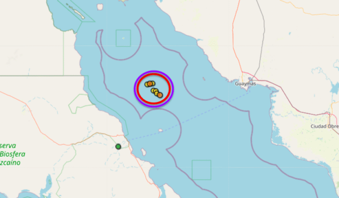 Guaymas, Sonora.- Suman 7 los temblores frente a las costas de Guaymas; se registraron en menos de 24 horas, todos con epicentro en aguas del Golfo de California.