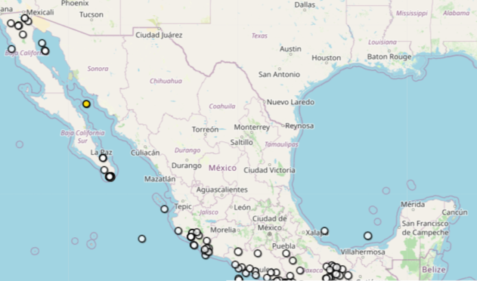Guaymas, Sonora.- Ocurrió un temblor de 3.3 grados en la escala de Richter en Guaymas, con epicentro a 74 kilómetros al suroeste del puerto, en aguas del Golfo de California, a 18.1 kilómetros de profundidad.