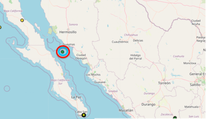 Guaymas, Sonora.- A primera hora de este día lunes se registró un temblor en Guaymas, con epientro a 65 kilómetros al suroeste de la ciudad, ha informado oficialmente el Servicio Sismológico Nacional (SSN).