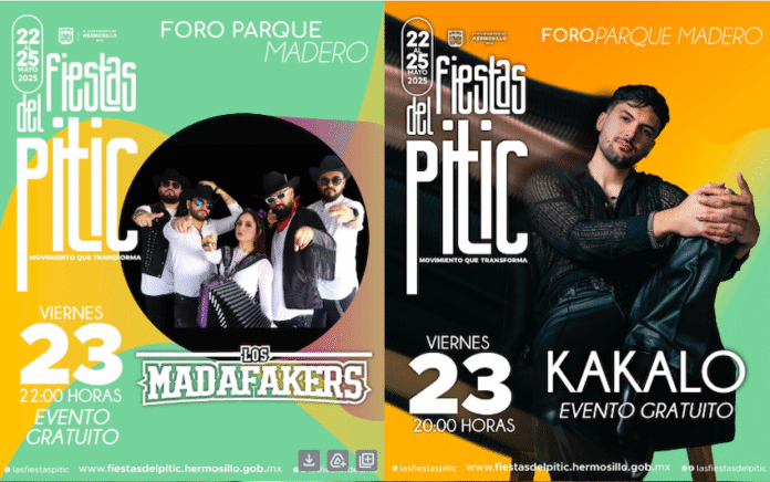 El viernes 23 a las 20:00 horas el escenario del Parque Madero recibirá al cantante, compositor y productor hermosillense Juan Carlos Corral Félix “Kakalo” y a las 22:00 horas a los Madafakers, mientras que el sábado 24 la cantante Ms Ámbar abrirá el foro a partir de las 20:00 horas y le seguirá el grupo musical “Los Concorde”, añadió la directora del IMCA.