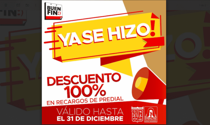 que por instrucciones del alcalde Luis Fuentes Aguilar, y conforme a lo establecido en la Ley de Ingresos, la Tesorería se adelantó al Buen Fin, aplicando dichos descuentos desde el 1 de noviembre.