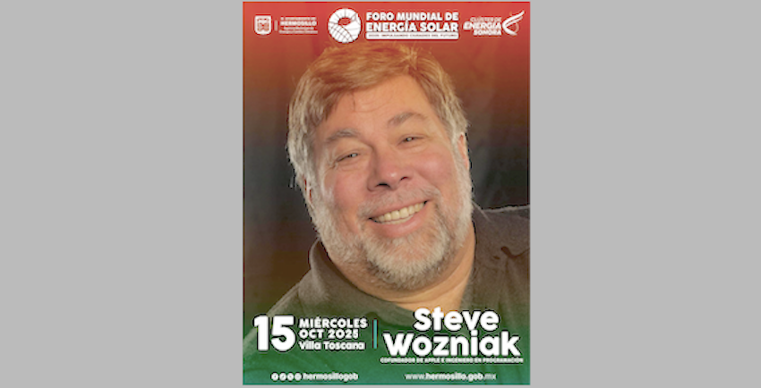 Inicio Todo listo para el Cuarto Foro Mundial de Energía Solar de Hermosillo con participación de Steve Wozniak, cofundador de Apple Todo listo para el Cuarto Foro Mundial de Energía Solar de Hermosillo con participación de Steve Wozniak, cofundador de Apple; bajo el tema Impulsando Ciudades del Futuro, arrancan las actividades el próximo miércoles 15 de octubre y continuarán el día 16 en el centro social Villa Toscana.