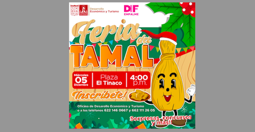 #Empalme Todo listo para el Festival del Tamal, en su cuarta edición; será el jueves; se estará llevando a cabo en la plaza del Tinaco, a partir de las cuatro de la tarde.