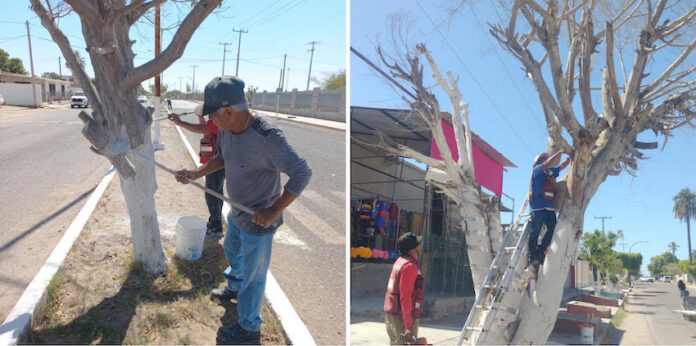 Como parte de los trabajos de mejoramiento urbano, se realiza el encalado de árboles en el bulevar 16 de Septiembre y en otros espacios públicos de la ciudad, en atención a las instrucciones giradas por el alcalde Luis Fuentes Aguilar.