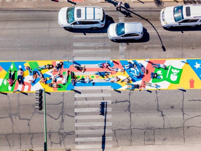 Hermosillo, Sonora.- El cruce del bulevar Luis Donaldo Colosio y la calle Galeana dejó de ser un punto de tránsito común para convertirse en un lienzo donde el arte de Enrique Chiu, junto a más de 50 personas voluntarias entre estudiantes de artes y arquitectura y sociedad civil, dio vida a la primera intervención de la iniciativa “Asphalt Art”, impulsada por Bloomberg Philanthropies en coordinación con el Ayuntamiento de Hermosillo que encabeza Antonio Astiazarán Gutiérrez.