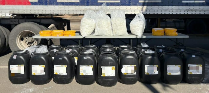 Hermosillo, Sonora.- Como resultado de la estrategia coordinada entre las instituciones que integran la Mesa Estatal de Seguridad, encabezada por el gobernador Alfonso Durazo Montaño, se efectuó el aseguramiento de un tractocamión con alrededor de 300 kilogramos de metanfetamina y la detención de dos personas, durante una revisión en el Puesto Militar de Seguridad “Cucapah” en San Luis Río Colorado.