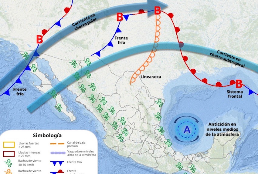 #Hermosillo Un nuevo frente frío se aproximará a Sonora, el miércoles; originando lluvias de ligeras a moderadas y descenso en la temperatura, de entre los -5 a los 0°C sobre la región serrana.